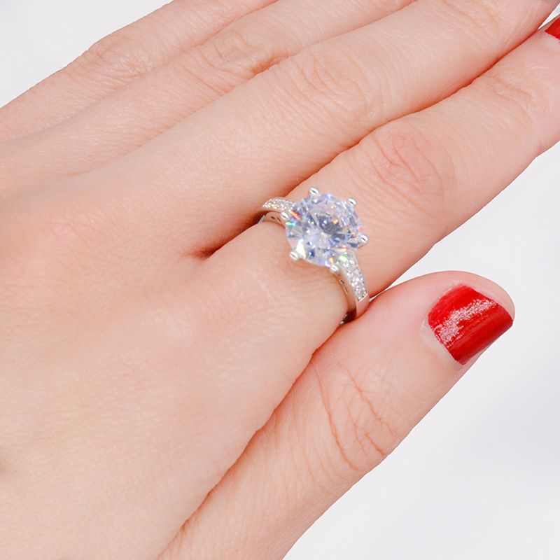 Six claw large zircon silver ring
