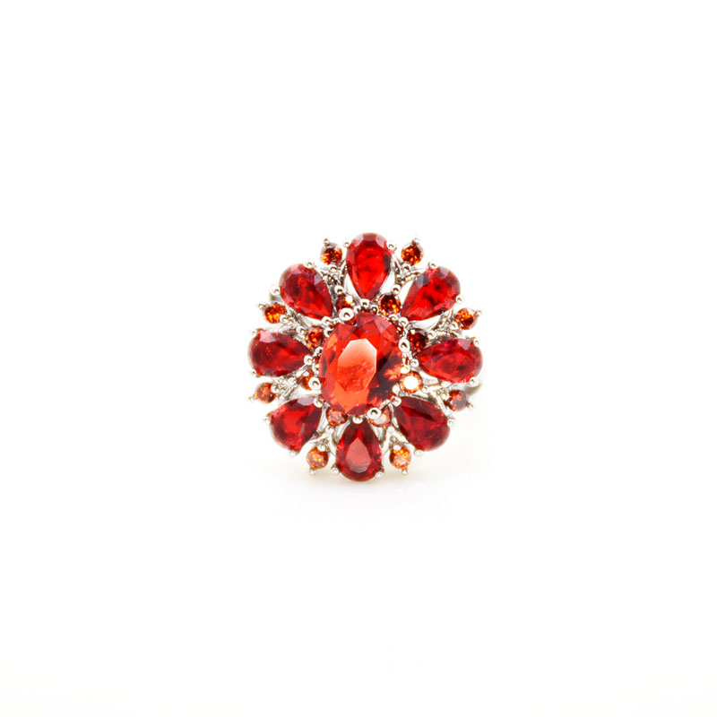 | Name | Red zircon floral silver ring |